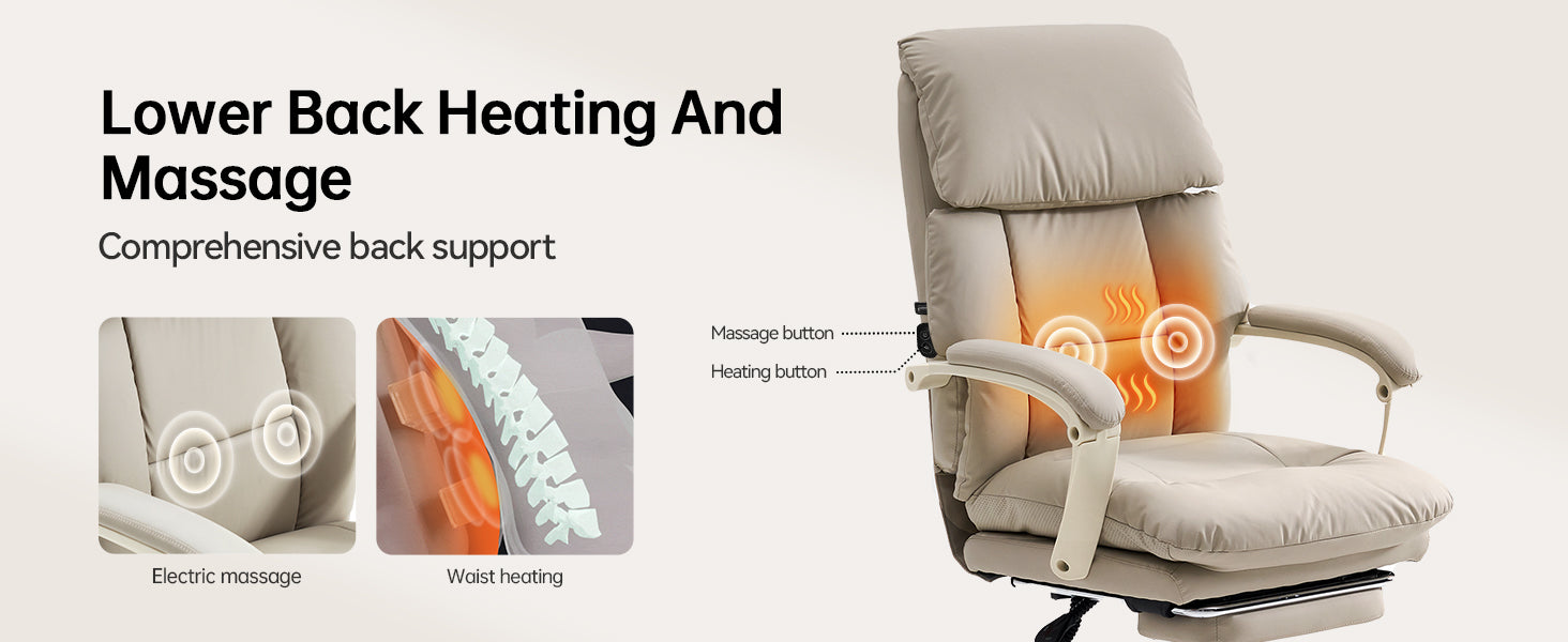 EMIAH C029 Ergonomischer Bürostuhl aus echtem Leder mit Fußstütze