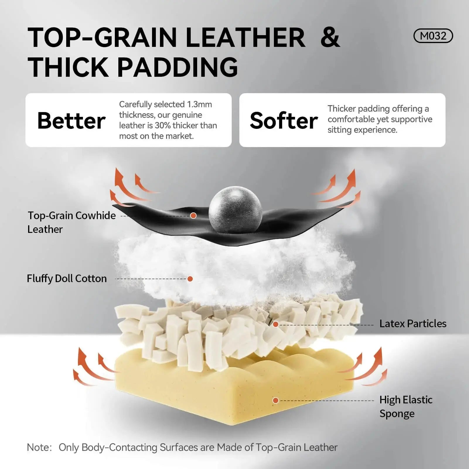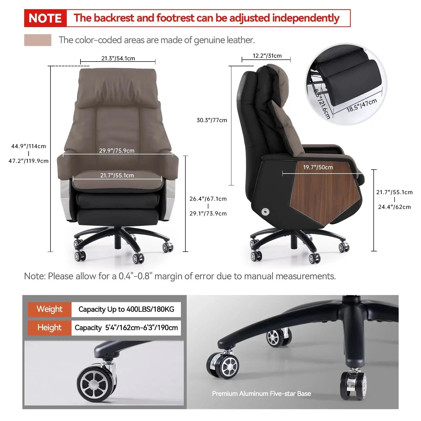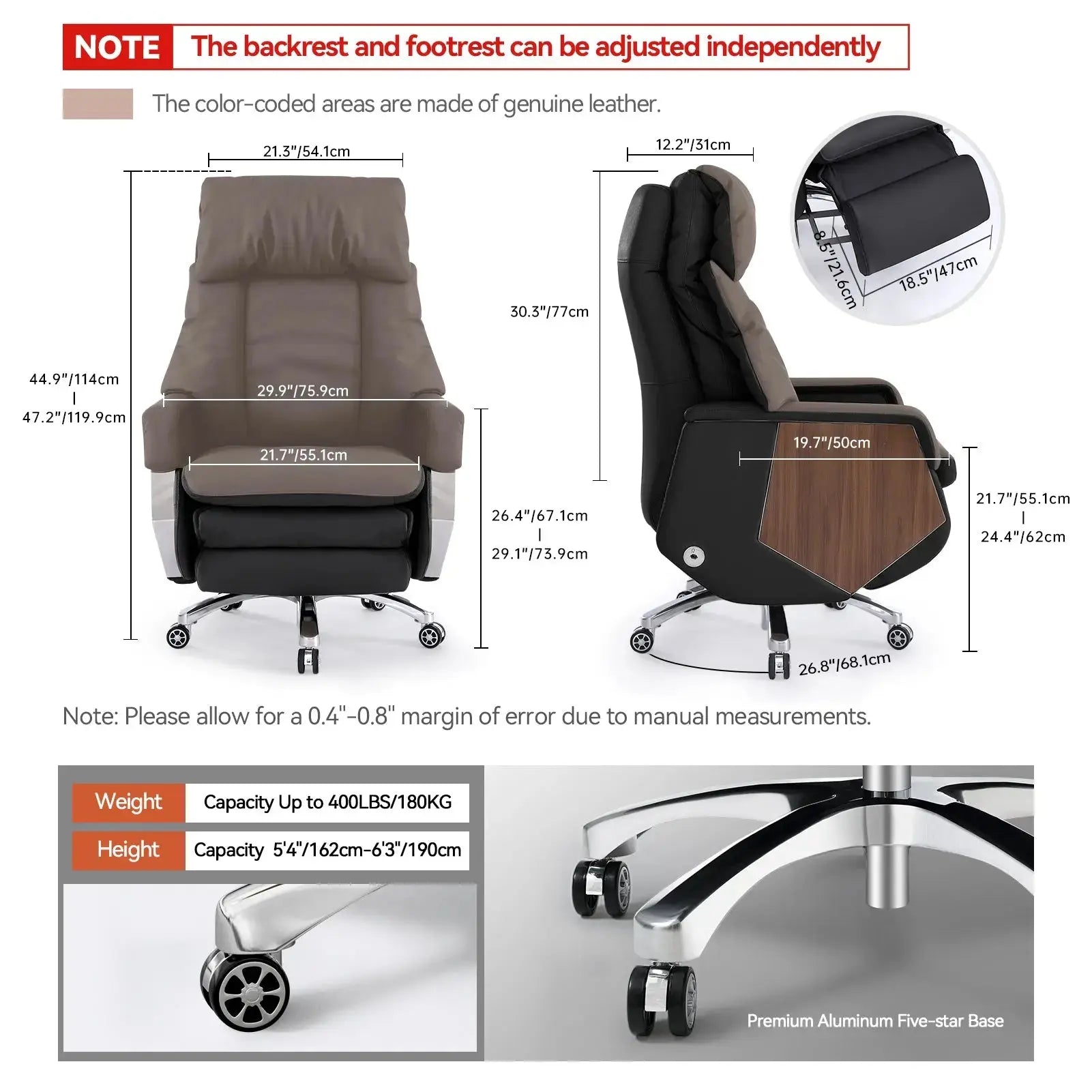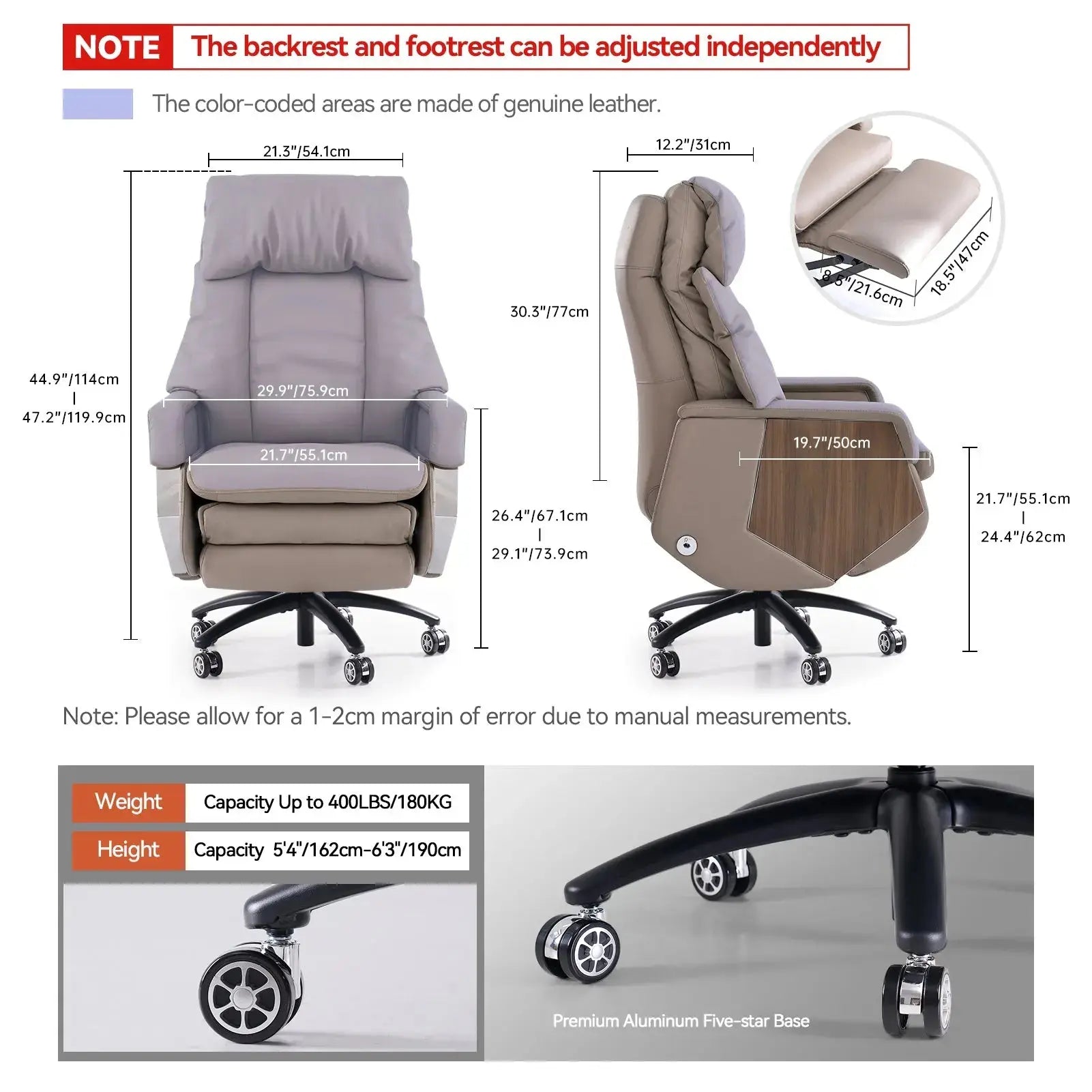Crafted from genuine leather, this chair provides exceptionalbreathability and comfort, even in warm weather.