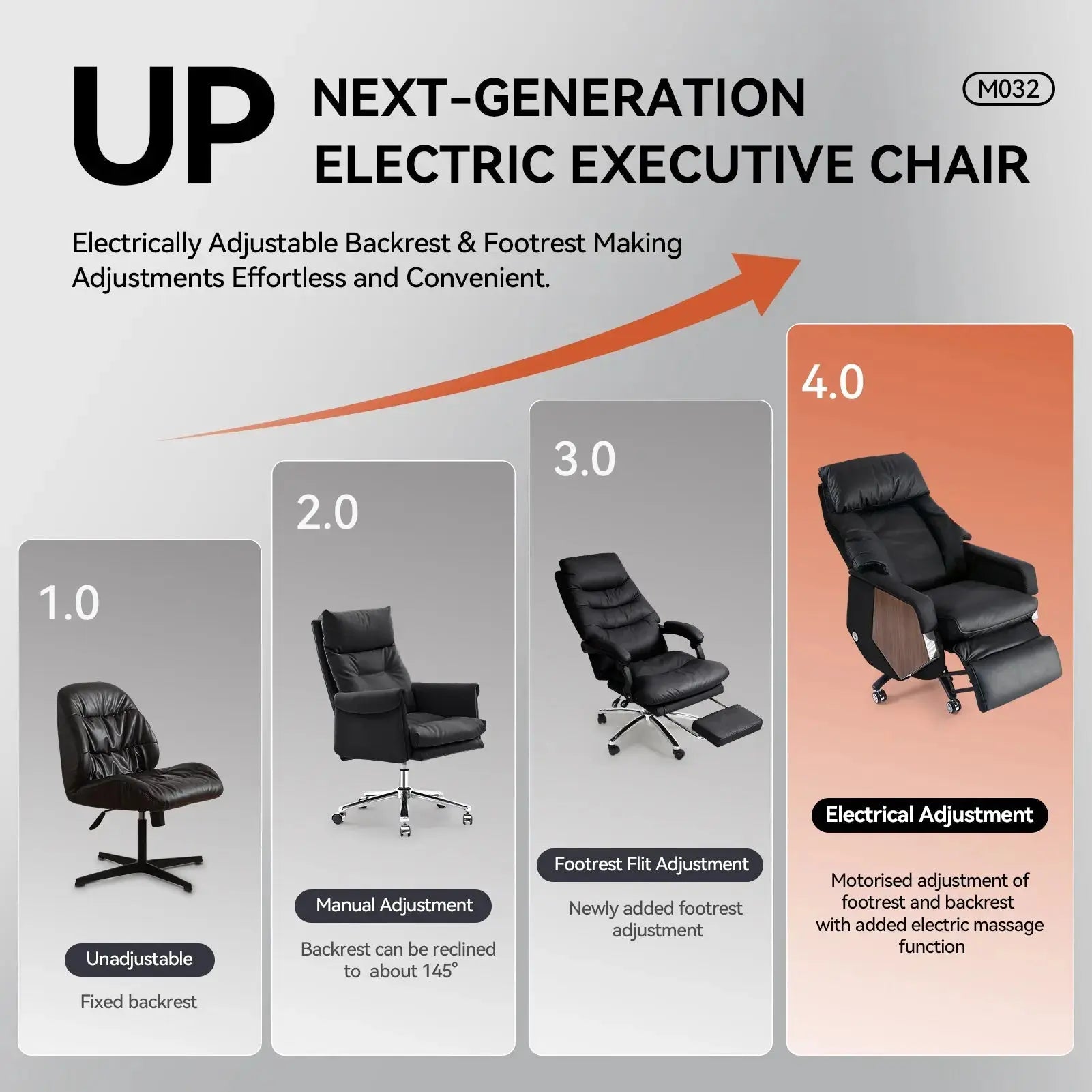 Der M032 verkörpert außergewöhnliche Qualität durch seinen kraftvollen Schub, den leisen Betrieb und die sanften, komfortablen Einstellungen, die einen nahtlosen Übergang gewährleisten.