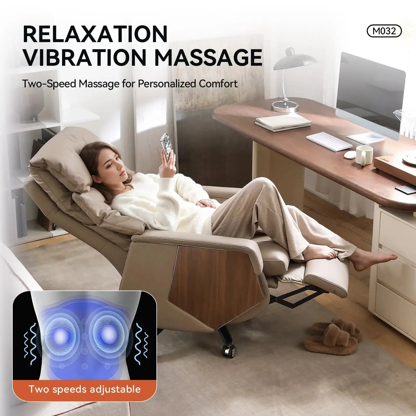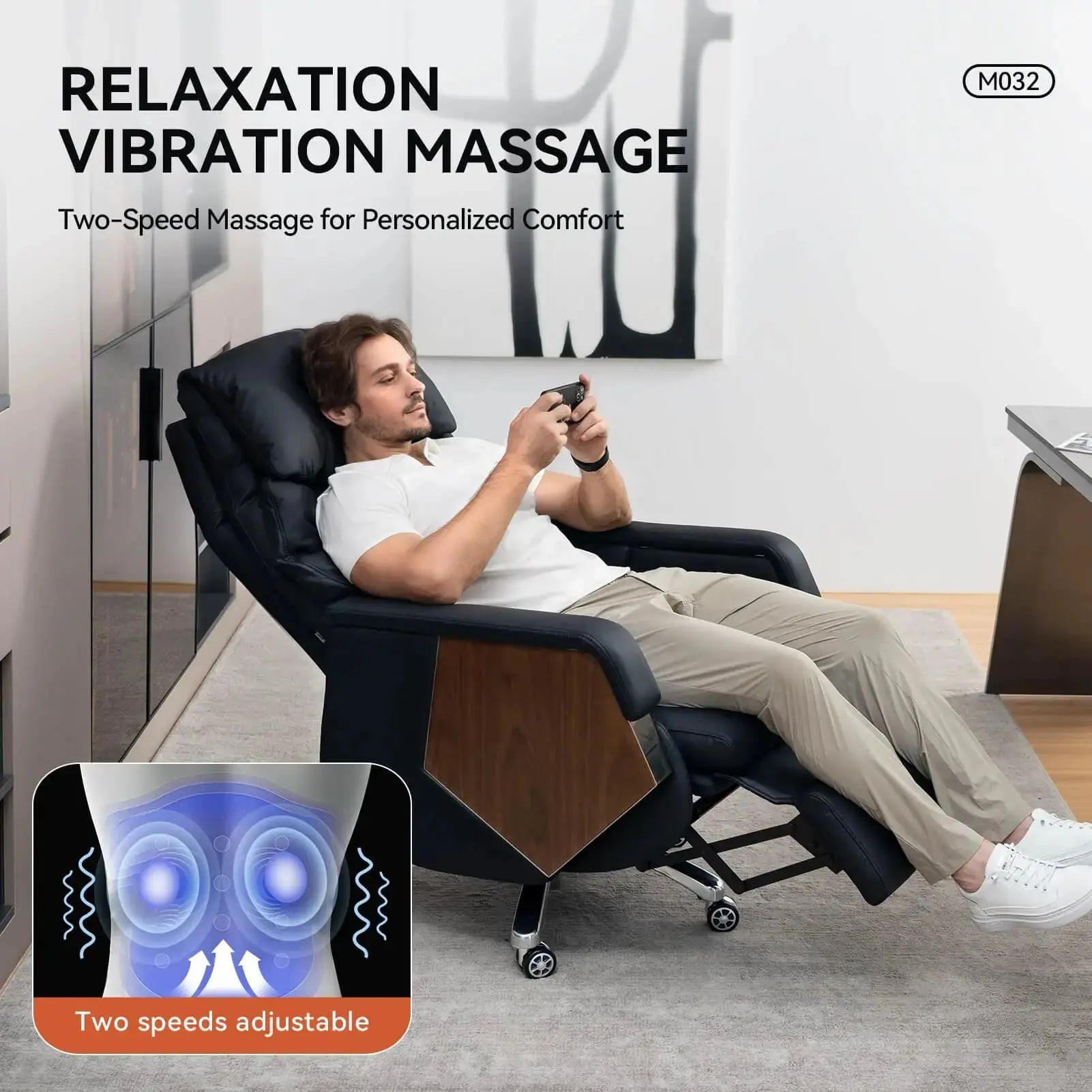 Der Bürostuhl M032 verfügt über ein ergonomisches Design, das den Benutzer in einem 130°-Winkel zwischen Oberschenkeln und Oberkörper positioniert. Dieser Winkel reduziert nachweislich effektiv den Druck auf die Wirbelsäule und die Gelenke und fördert so Komfort und Haltungsunterstützung. Durch die Minimierung der Belastung fördert der elektrische Chefsessel M032 ein Gefühl der Entspannung und des Wohlbefindens.