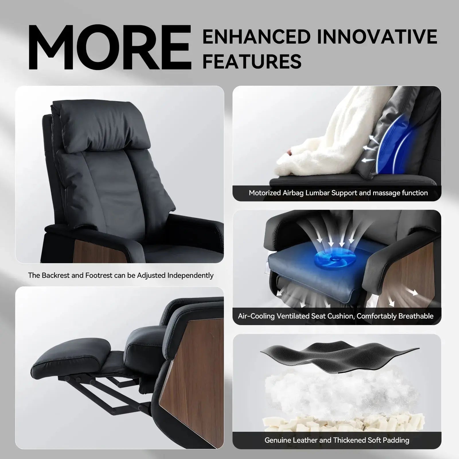 Model Electric Lumbar Support One-Touch Massage & Recline Ventilated Seat System Premium Materials & Soft Padding