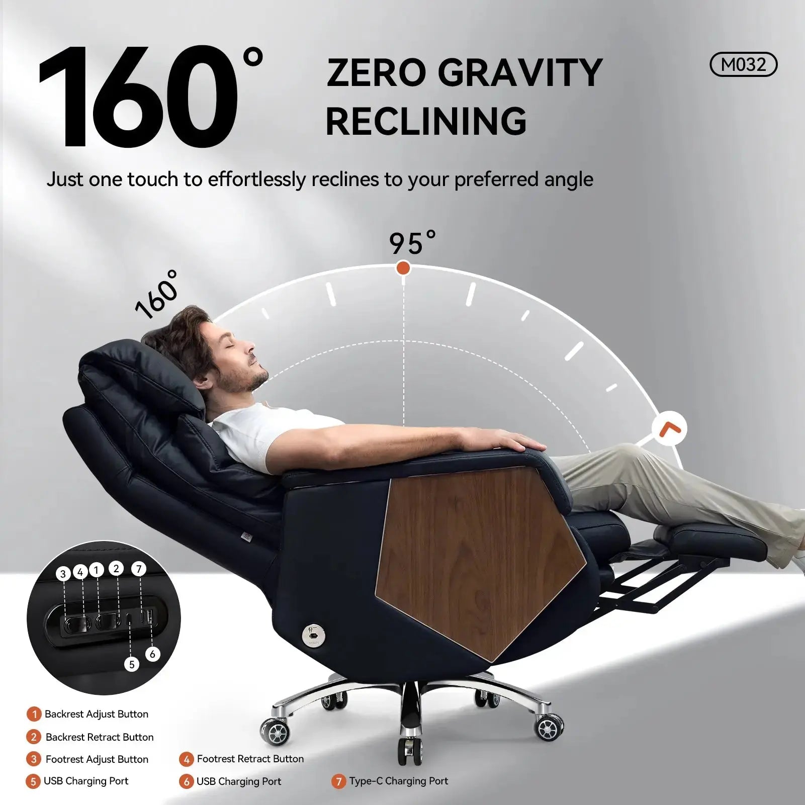 1. Zero-Gravity Reclining: Smooth electric reclining creates a near zero-gravity experience for deep relaxation during work or rest.