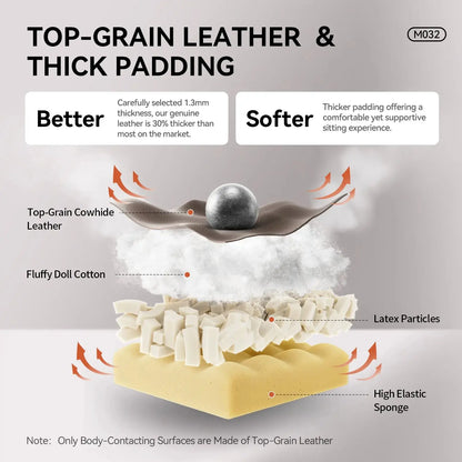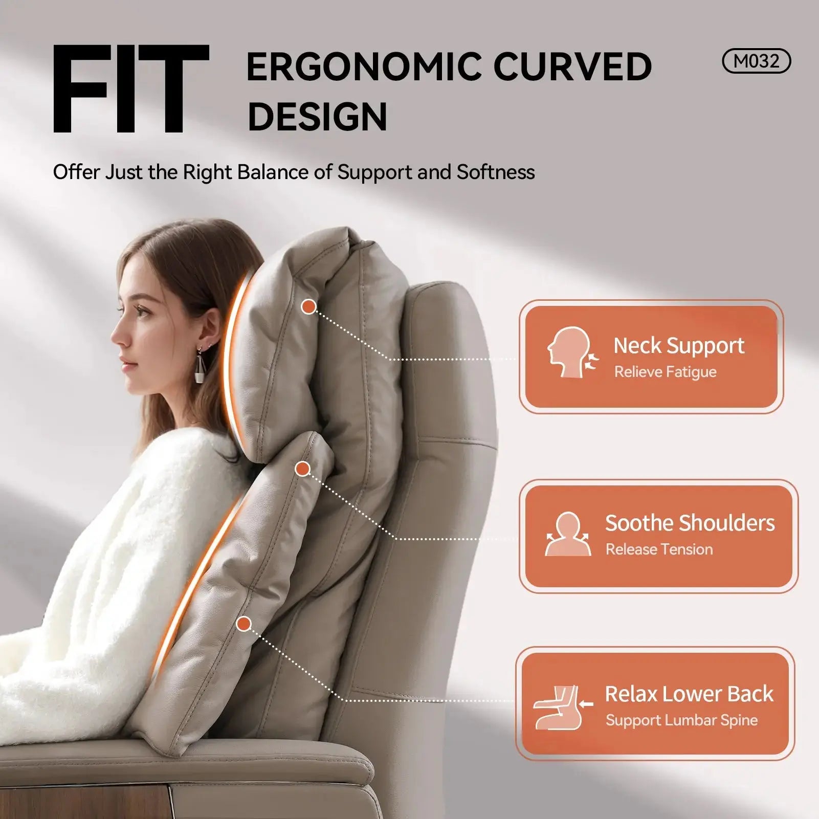 5. Pressure-Free Headrest: Ergonomic headrest design supports the neck without pressure in both upright and reclined positions.