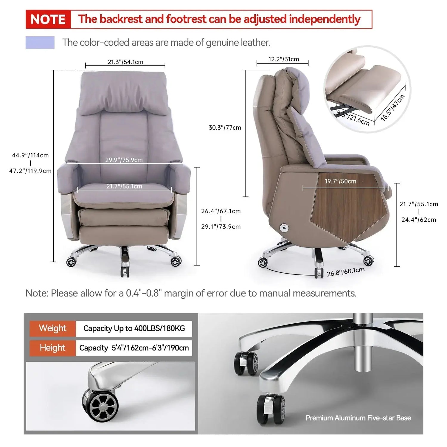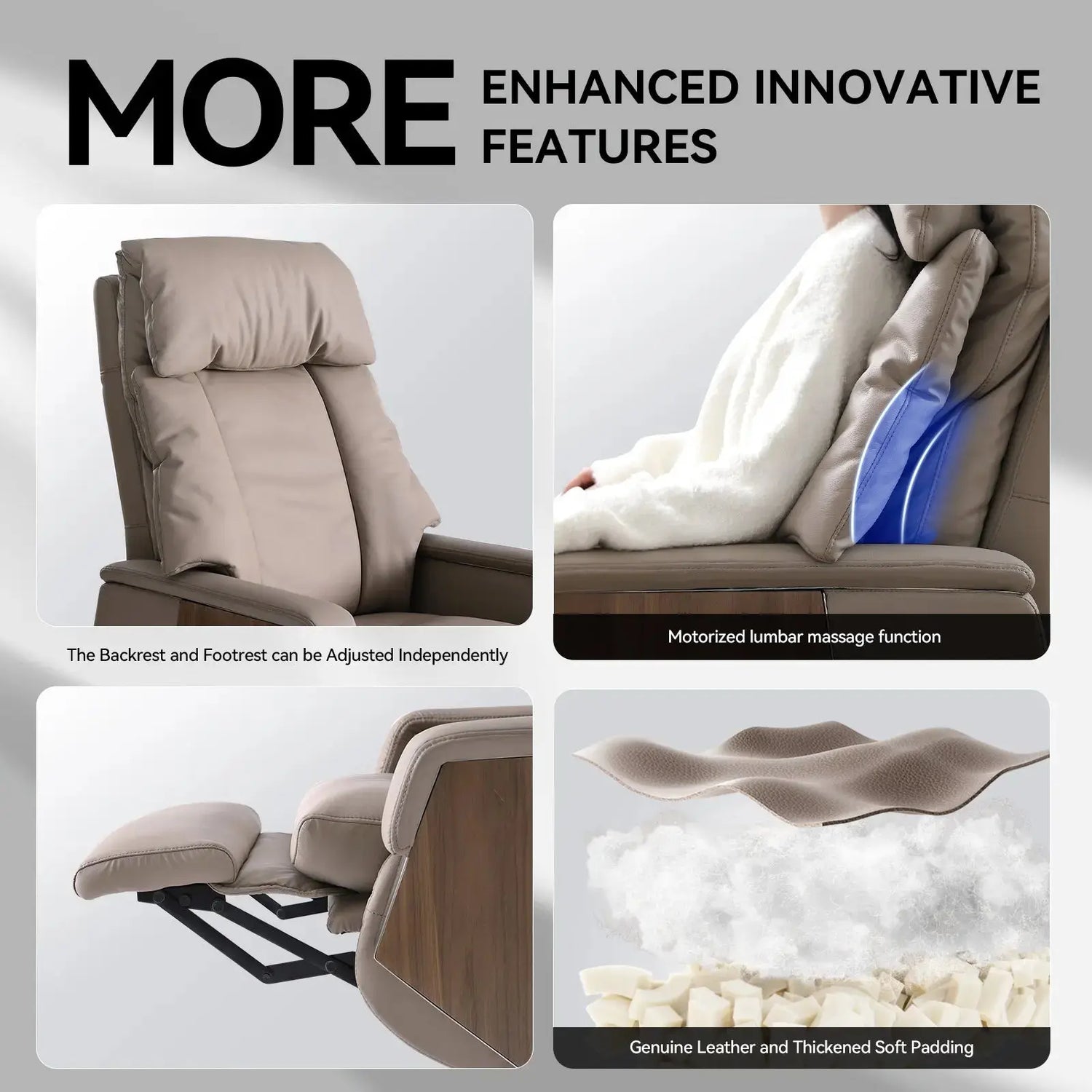 4. Dual-Motor Independent Control: Backrest and footrest adjust independently, allowing precise positioning for sitting or lying flat.