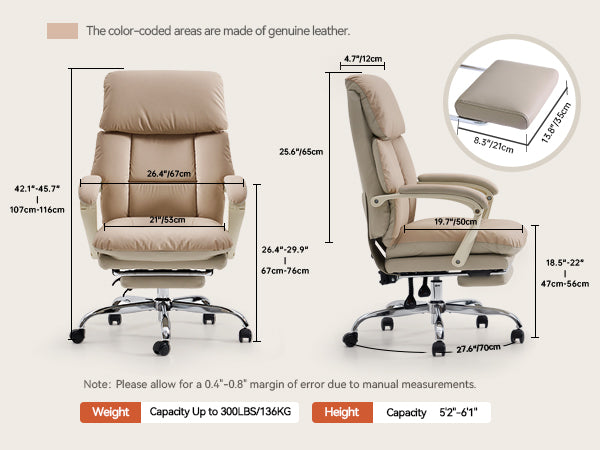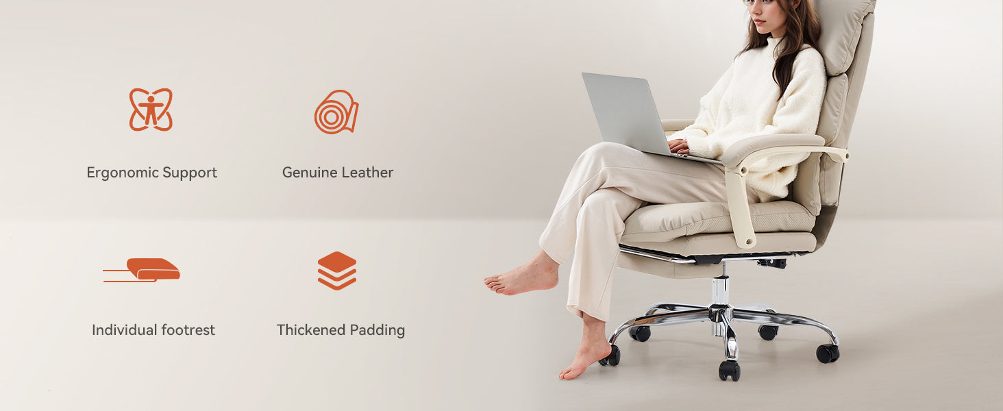 EMIAH C029 Ergonomic Genuine Leather Office Chair with Foot Rest