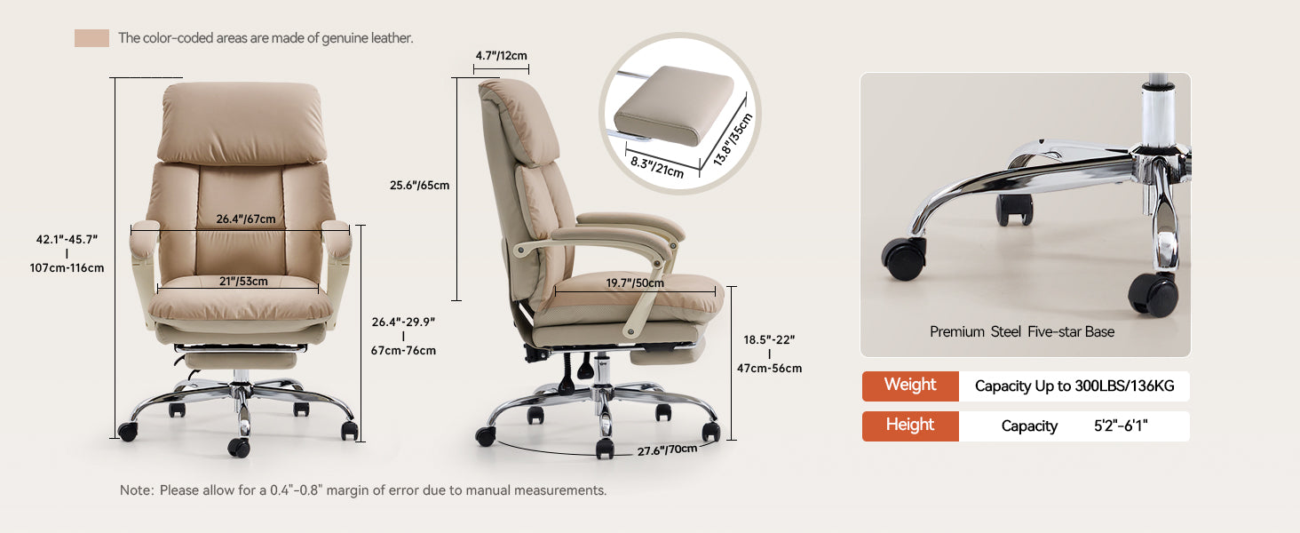 - 💎 Genuine Leather Contact Surface: Luxurious look and soft touch for long-lasting comfort.