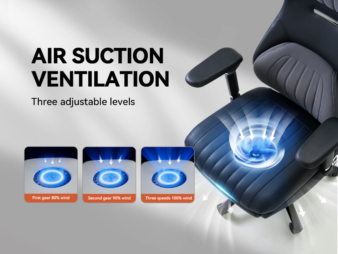 Adjustable in multiple levels to keep you cool and comfortable during long sitting sessions.