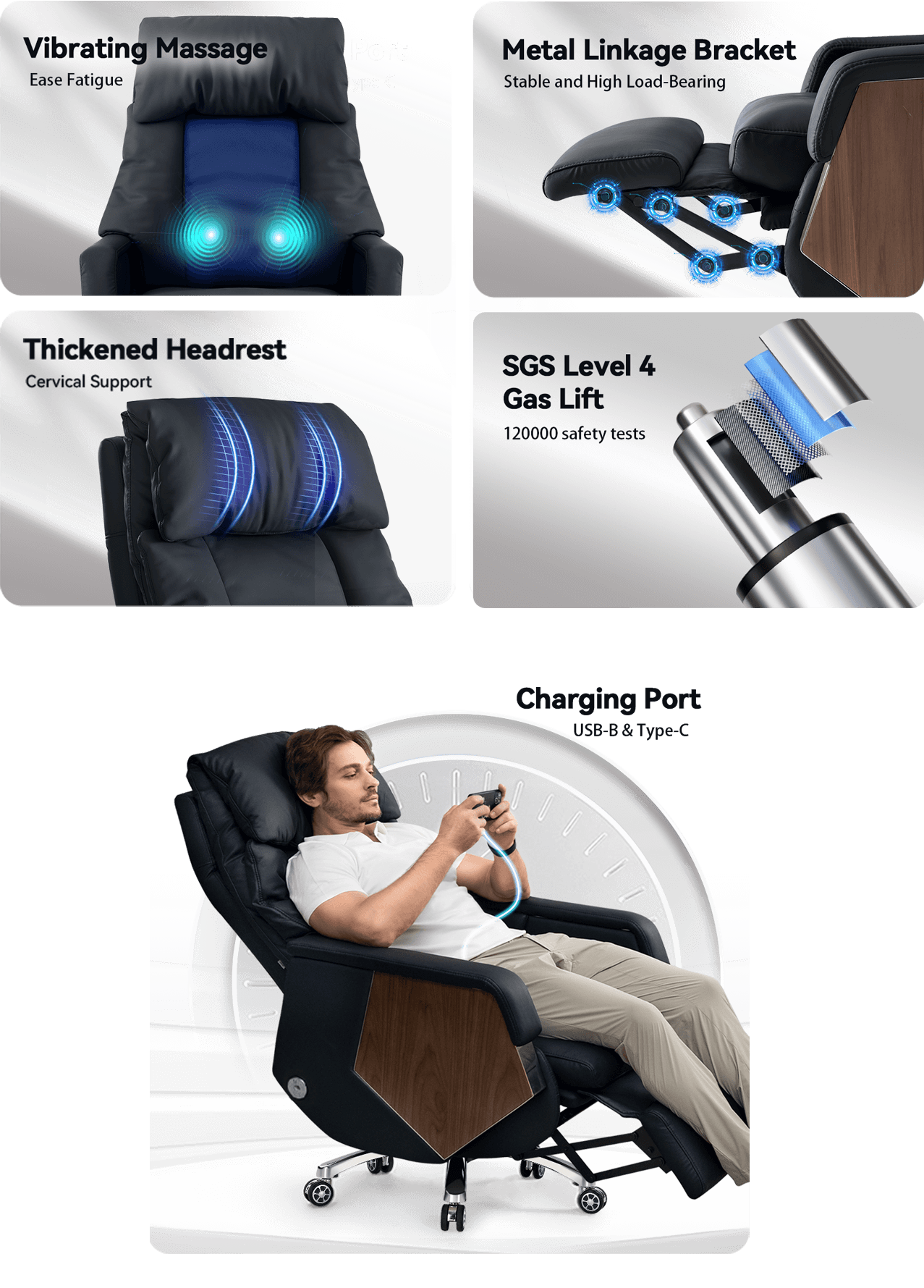 - Zero-Gravity Reclining: Smooth electric reclining creates a near zero-gravity experience for deep relaxation during work or rest.
